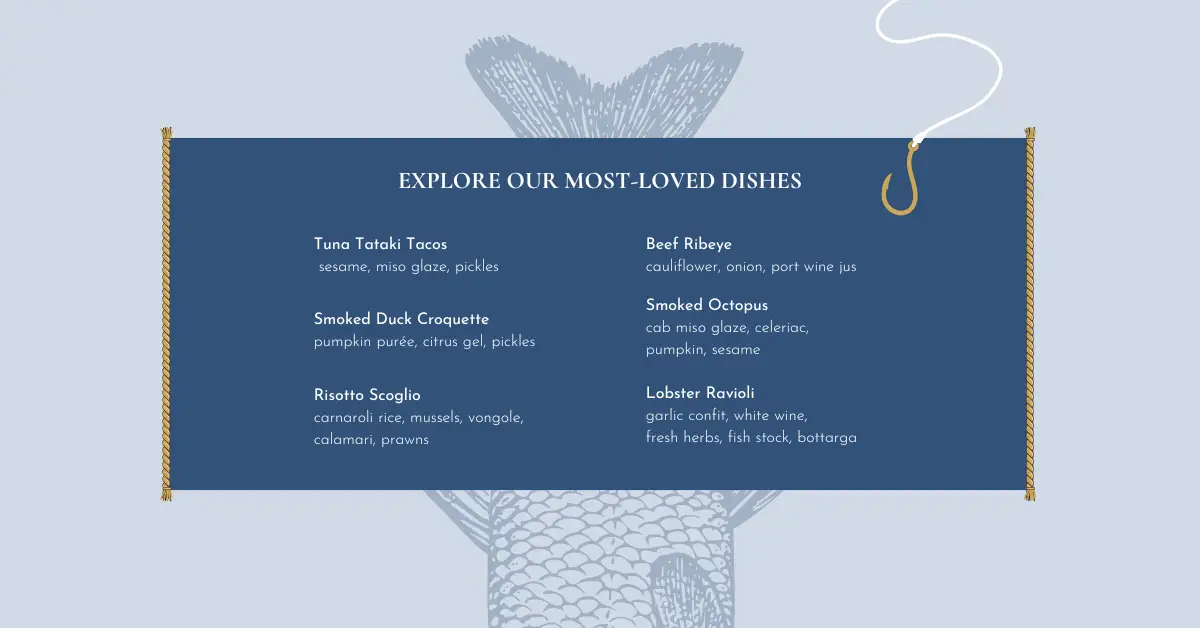 That’s why we’re dedicated to serving only the freshest, highest-quality ingredients each season has to offer. Our menu showcases the best of local produce, with a special focus on the day’s catch from local waters, sourced directly from the hands of dedicated fishermen.